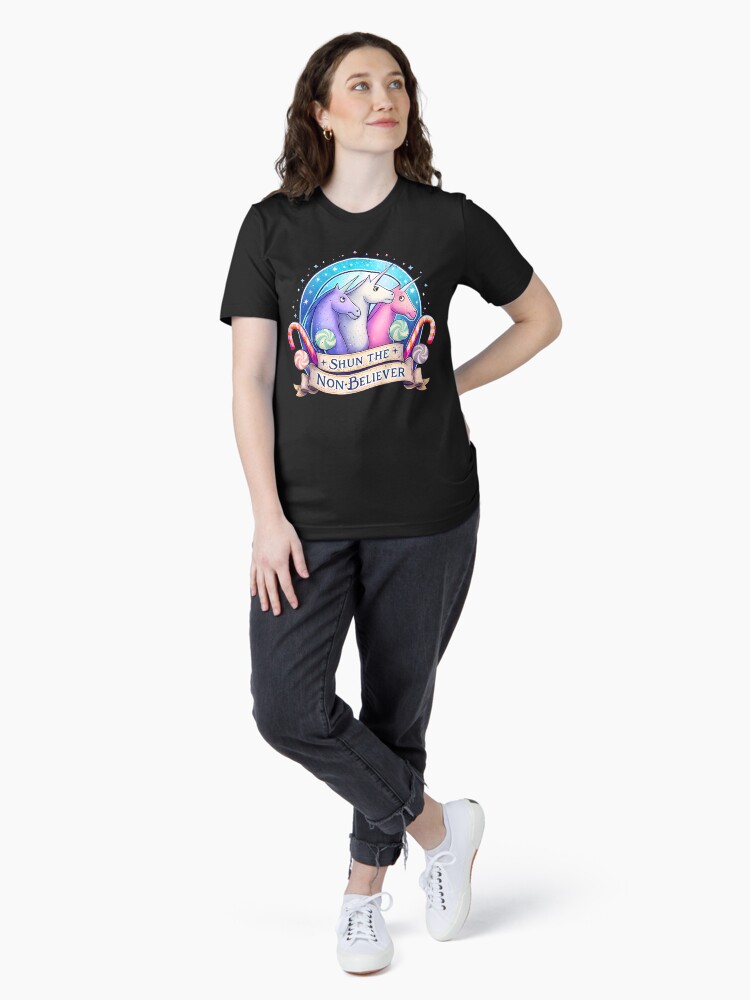 Funny Shun The Non-Believers Unicorn Candy Trendy Sarcasm Unisex T-Shirt t-shirt for men and women – bold printed design, premium cotton blend, comfortable fit. Shop unique statement tees at UrbanTeeShop today!