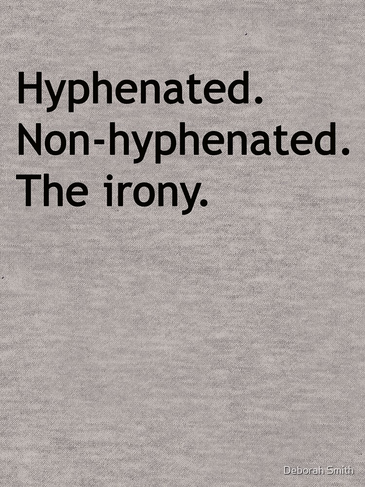 Hyphenated Non-hyphenated. The irony. Unisex T-Shirt t-shirt for men and women β bold printed design, premium cotton blend, comfortable fit. Shop unique statement tees at UrbanTeeShop today!