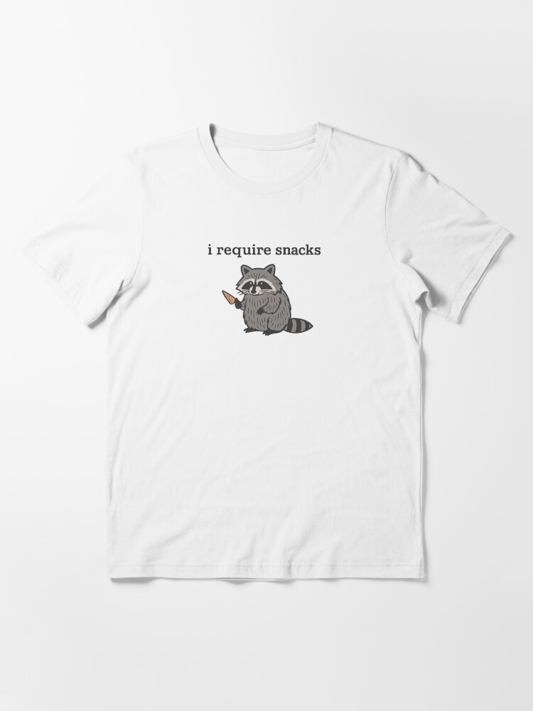 I Require Snacks Funny Raccoon Essential T-Shirt classic tees pair effortlessly with: