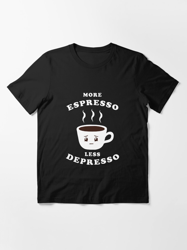 More Espresso Less Depresso Essential T-Shirt t-shirt for men & women β bold printed design, premium cotton blend, comfortable fit. Shop unique statement tees at UrbanTeeShop today!