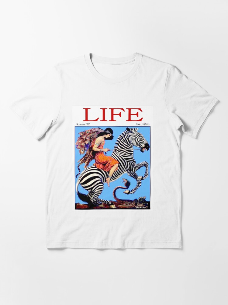 PEACOCK GIRL ON A ZEBRA : Vintage 1922 Life Print Essential T-Shirt is a premium classic t-shirt designed to capture attention and express personality through bold, meaningful artwork. This statement tee features a professionally printed design that delivers instant visual impact and resonates with those who appreciate distinctive style.