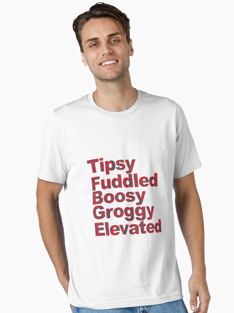 Phish Tipsy Fuddled Boosy Groggy Elevated in Letters Essential T-Shirt t-shirt for men & women β bold printed design, premium cotton blend, comfortable fit. Shop unique statement tees at UrbanTeeShop today!