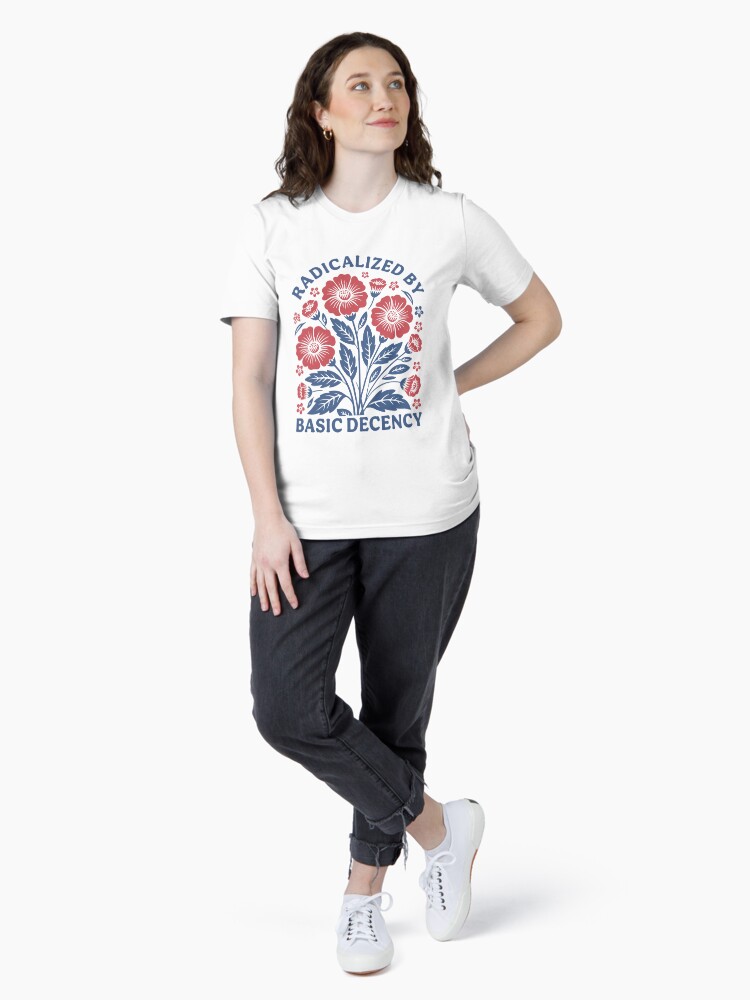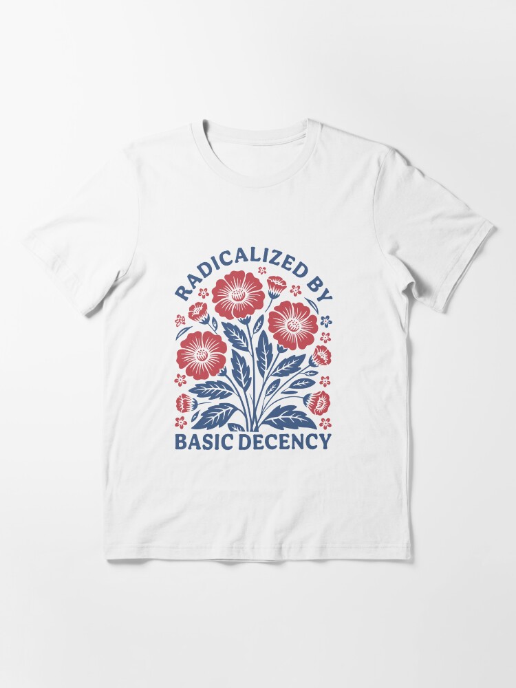 Radicalized by Basic Decency Shirt, Flower Shirt, Pro Democracy M4696 Unisex T-Shirt t-shirt for men and women – bold printed design, premium cotton blend, comfortable fit. Shop unique statement tees at UrbanTeeShop today!