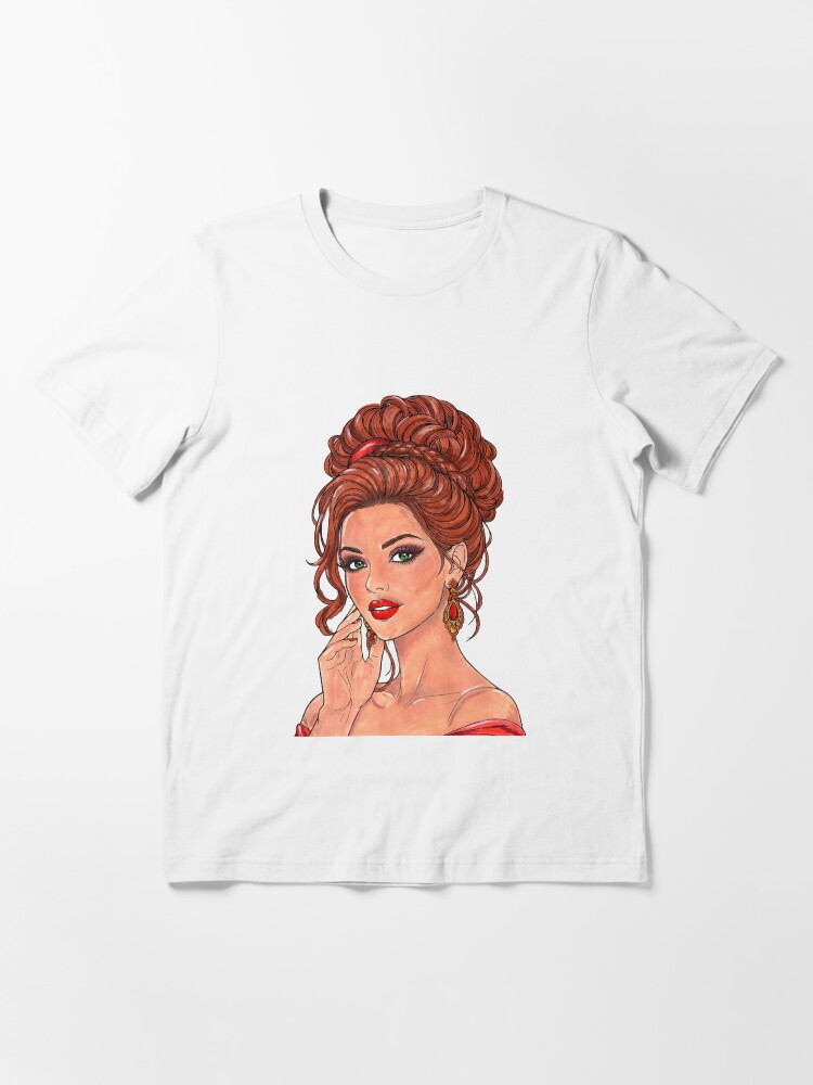 Retro Glam Red Hair Girl Portrait Essential T-Shirt is available in both cuts to ensure the perfect fit: