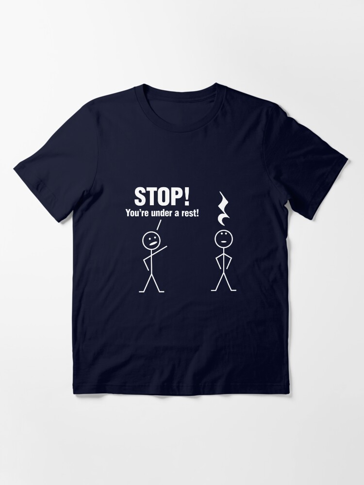Stop! You’re under a rest! Essential T-Shirt is a premium classic t-shirt designed to capture attention and express personality through bold, meaningful artwork. This statement tee features a professionally printed design that delivers instant visual impact and resonates with those who appreciate distinctive style.