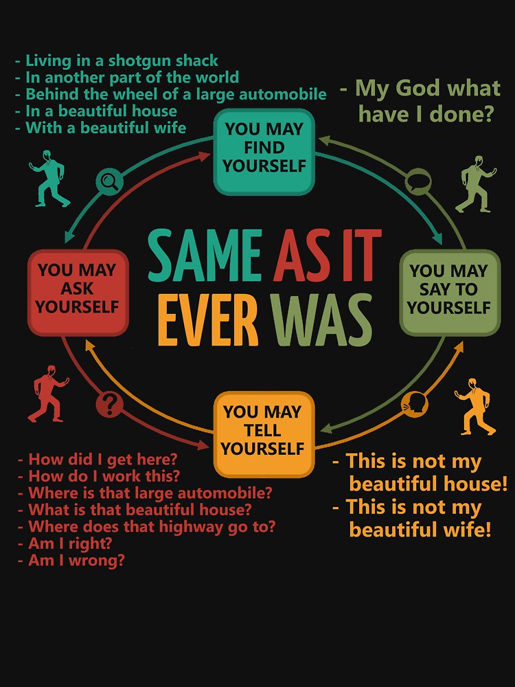 Express yourself with Talking Heads Once In A Lifetime Circular Flowchart Essential T-Shirt β where bold design meets everyday comfort. Shop now at UrbanTeeShop.com and add this exclusive printed t-shirt to your wardrobe.