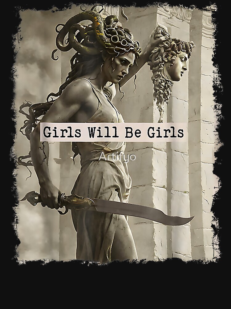 Vintage Girls Will Be Girls Medusa with the Head Feminist Feminism Unisex T-Shirt t-shirt for men and women – bold printed design, premium cotton blend, comfortable fit. Shop unique statement tees at UrbanTeeShop today!
