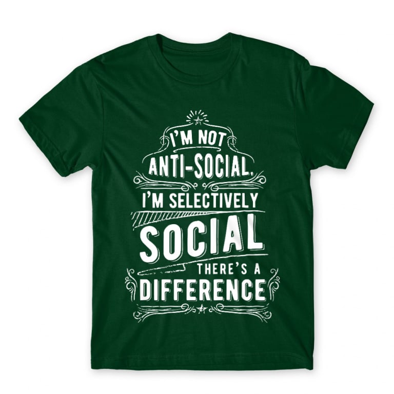 Designed for fans of Antisocial, Funny and those who appreciate expressive fashion, Selectively social works as both a wearable statement and a personal style choice. It pairs easily with everyday outfits while adding personality, confidence, and visual interest. Ideal for casual wear, gifting, or collecting, this apparel lets you showcase your interests and attitude in a simple, high-quality way.